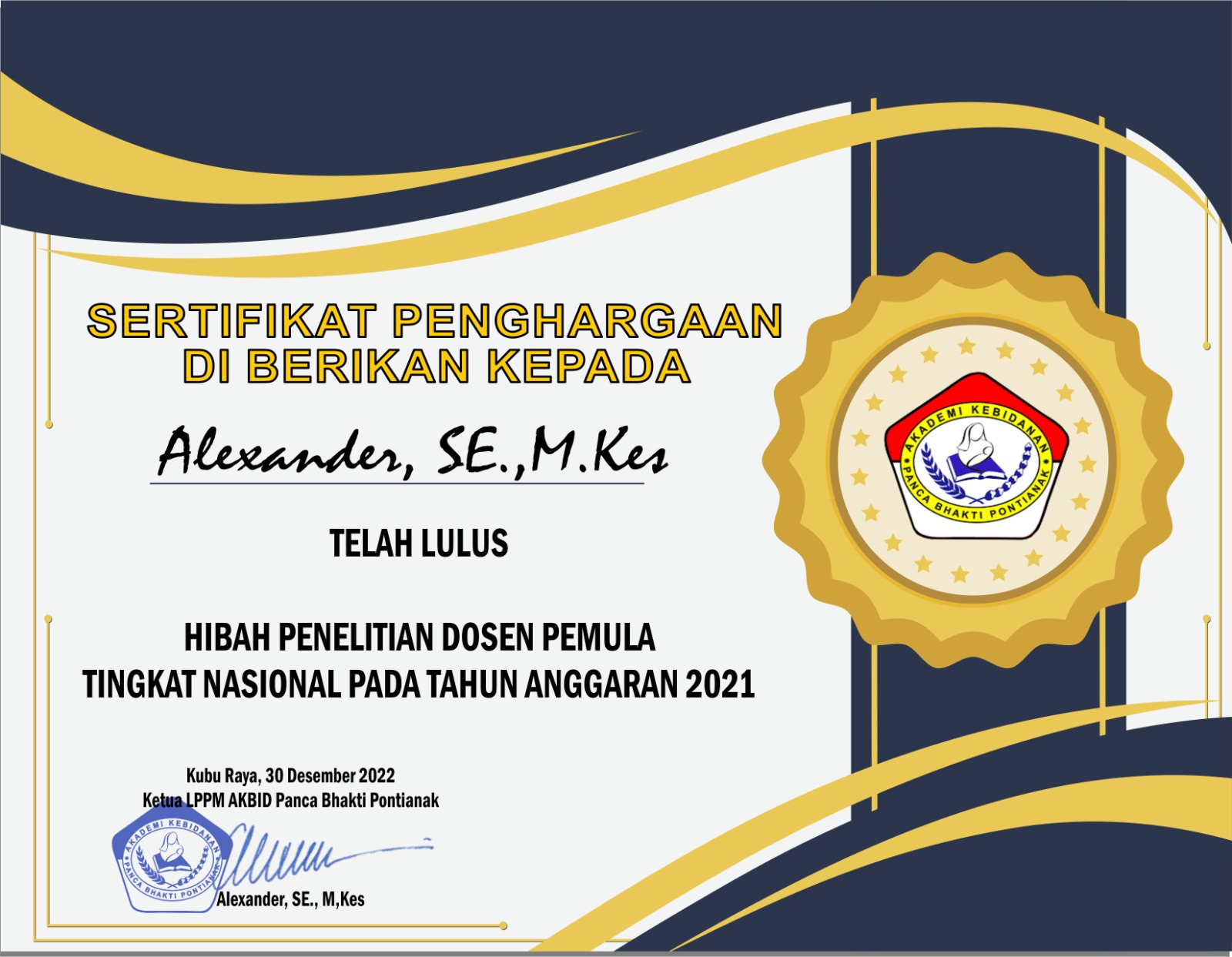 Sertifikat Hibah Penelitian